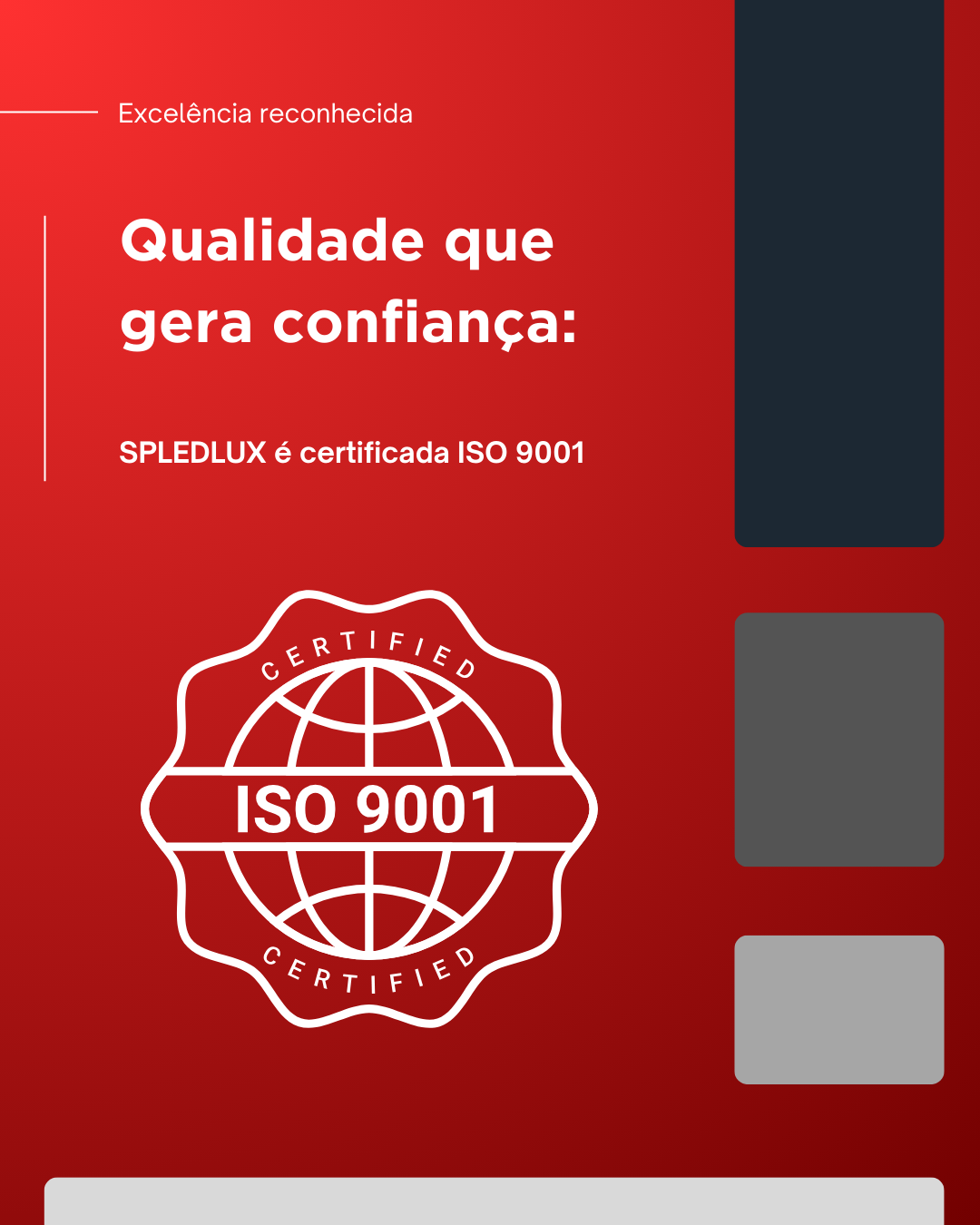 A SPLEDLUX tem o orgulho de informar que possui a certificação ISO 9001, um dos mais reconhecidos selos de gestão da qualidade no mundo. Este certificado comprova que todos os nossos processos seguem padrões internacionais de excelência, garantindo eficiência, confiabilidade e melhoria contínua em cada etapa do atendimento e na entrega de nossos produtos e serviços.