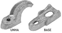 ABRAÇADEIRA TIPO UNHA REFORÇADA E BASE DE APOIO. Fabricada em ferro nodular de alta resistência mecânica, utilizado para fixação de