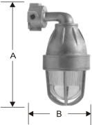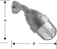 Luminária arandela 90°, corpo e grade de proteção em liga de alumínio fundido, globo de vidro resistente a choques térmicos,